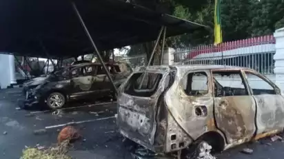 Kota Jambi, tvOnenews.com- Massa yang berunjuk rasa di Jambi juga membakar satu unit mobil jurnalis dan dua unit mobil dinas kejaksaan yang terparkir di halaman Kantor Kejaksaan Tinggi Jambi, Sabtu dinihari.