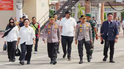 tvOnenews.com - Kapolri beserta Ketua Komisi IV DPR RI, Menko Pangan, Kepala Badan Pangan Nasional, dan Dirut Bulog terpantau tiba di Mahmud Badaruddin II dari Palembang dilanjutkan menaiki helikopter Polri menuju Kab. OKU Timur, Prov. Sumsel pada Sabtu, 27 September 2025.