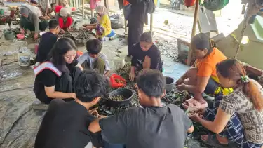 Salah satu agenda utama dalam kegiatan tersebut adalah kunjungan lapangan ke Kalibaru, Cilincing, Jakarta Utara, wilayah yang dikenal sebagai sentra pengupasan kerang.