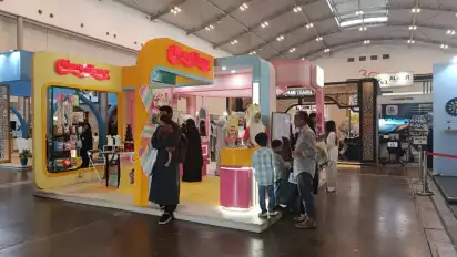 Salah satunya adalah brand Beauty Charm yang tampil menonjol dengan konsep booth feminin dan modern, menghadirkan rangkaian skincare dan make-up halal yang bisa langsung dicoba di lokasi.