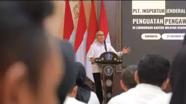 tvOnenews.com - Pelaksana Tugas (Plt.) Inspektur Jenderal Kementerian Hukum, Wisnu Nugroho, menyampaikan tiga pesan penting kepada jajaran Kantor Wilayah Kemenkum Jawa Timur dalam kegiatan Penguatan Teknis dan Kebijakan Inspektorat Jenderal yang digelar pada Rabu (29/10).