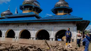 tvOnenews.com - Bersandar pada bongkahan batu besar, sebatang pohon sepanjang dua meter mengayun pelan. Menyisakan pucuk ranting dan dedaunan kecoklatan berhias lumpur. Dua bocah di Kampung Balai Jorong Kayu Pasak, Nagari Salareh Aia, Palembayan, Kab. Agam, Sumatera Barat menapaki sisa luapan air banjir di sekitar rumahnya pada Rabu (3/12) pagi.
