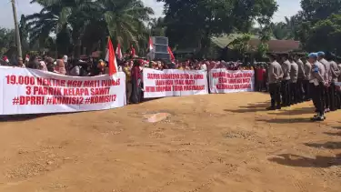 Jakarta, tvOnenews.com - Warga dari 4 ke penghuluan dan 1 kelurahan bersama himpunan mahasiswa Rokan Hilir, Riau menggelar aksi unjuk rasa di depan gerbang PT Salim Ivomas Pratama pada Kamis (18/12/2025).