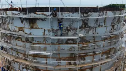 “Kita dari mengerjakan HSD Tanki ini kapasitas 5000 ton itu dengan saat ini progresnya sudah mencapai 70 persen, 70 persen itu untuk pengerjaan tankinya sendiri menyisakan pekerjaan rofnya tanki, kemudian sama fasilitas pipa dan segala macamnya,” ujar Antonius.