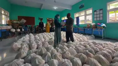Ciamis, Jawa Barat - Tanggal 10 dan 11 Muharam tahun Hijriyah diperingati umat Muslim sebagai Hari Anak Yatim. Siswa SMP Negeri 2 Ciamis, Jawa Barat, membagikan paket sembako untuk siswa yatim. Paket sembako berupa beras, makanan ringan, dan vitamin. Selain dalam rangka Muharaman, bakti sosial pembagian sembako ini juga dilakukan di masa PPKM level 3 Kabupaten Ciamis.