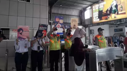 Jakarta - KAI Commuter mengadakan kampanye cegah pelecehan seksual bertajuk "Anti Kekerasan dan Pelecehan Terhadap Wanita di Transportasi Publik" kepada pengguna commuter di beberapa stasiun, seperti Stasiun Tanah Abang, Stasiun Cikarang, dan Stasiun Bogor.