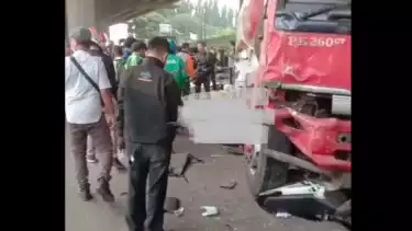 Kecelakaan terjadi di kawasan Cibubur, Bekasi Jawa Barat. Sebuah Truk tangki Pertamina menyeruduk sejumlah pengendara pemotor di Jalan Alternatif Cibubur, jawa Barat, Senin (18/7/2022).