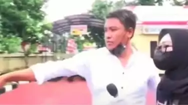 "Kamu tunggu dulu, kamu bicara sama pohon dulu ya," kata anggota kepada jurnalis yang saat itu tengah meliput dari rekaman video yang beredar.