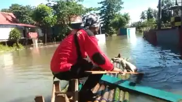 Petugas Pemadam Kebakaran Evakuasi Anjing yang Terjebak Banjir
