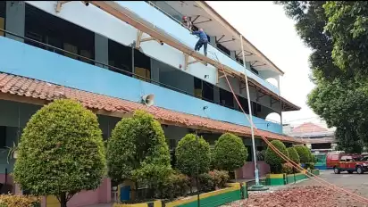 Lebih lanjut, Dirga mengatakan petugas yang diterjunkan sebanyak 6 personil. Kanopi yang ambruk sepanjang 15 meter dan proses pemotongan besi dilakukan agar tidak menimpa pelajar dan guru.