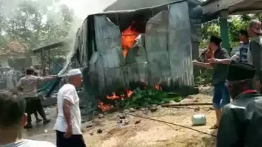 Kebakaran terjadi saat warga yang hendak mengisi bahan bakar kendaraan sepeda motor, tiba-tiba api dari selang pom mini menyambar ke tangki kendaraan. Akibatnya, kendaraan seorang warga yang bernama Muhlis ikut terbakar.