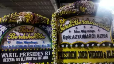 "Turut berdukacita atas wafatnya Bapak Azyumardi Azra," demikian tertulis karangan bunga dari Presiden Joko Widodo dan keluarga.