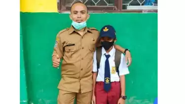"Kan selama covid, anak-anak tidak ke sekolah. Makanya waktu PTM dimulai, yang ada hanya celana SDnya dulu, itulah yang dia pakai ke sekolah," kata Mukhlis, Kamis (16/9).