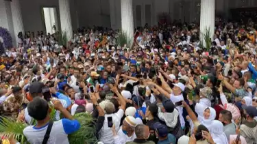 Pantauan tvOnenews.com, ratusan masyarakat memadati Jalan Medan Merdeka Selatan. Mereka kompak mengenakan pakaian serba putih dengan membawa beberapa spanduk.