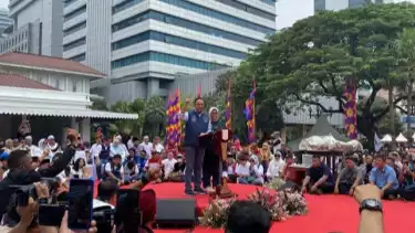 Pantauan tvOnenews.com di lokasi, tampak seluruh massa turut menyanyikan lagu Maju Tak Gentar bersama-sama dan bersorak sorai meramaikan suasana di Balai Kota.