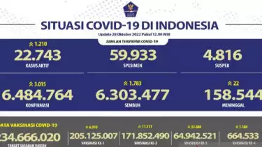 Jakarta - Satuan tugas (Satgas) Penanganan Covid-19 melaporkan terjadi penambahan kasus aktif sebanyak 1.210 kasus di Tanah Air pada Jumat (28/10/2022).