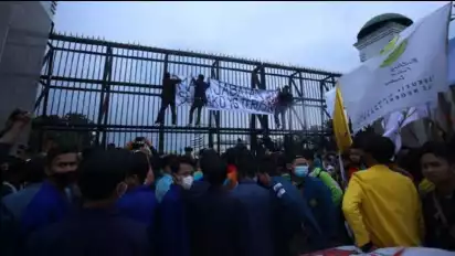 Jakarta - Aksi unjuk rasa Badan Eksekutif Mahasiswa Seluruh Indonesia (BEM SI) di Patung Kuda Arjunawiwaha (Indosat), Gambir, Jakarta Pusat diwarnai kericuhan, Jumat (28/10/2022).