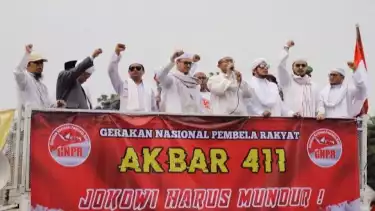 Jakarta - Ribuan demonstran bertajuk Aksi 411 yang juga merupakan Gerakan Nasional Pembela Rakyat (GNPR) dan Persaudaraan Alumni 212 (PA 212) serukan Jokowi Mundur.