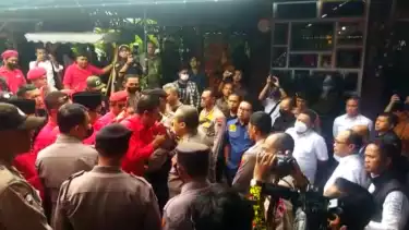 Dari video yang diterima tvOnenews pada Jumat (11/11/2022), seorang kader PDIP terlihat meneriaki Desmond sambil memegang speaker.