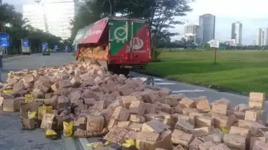 Beruntung hanya muatan yang terguling sedangkan kendaraan truk bernomor polisi B 9522 KYT yang dikemudikan oleh M. Ali (50) tak sampai mengalami kecelakaan.
