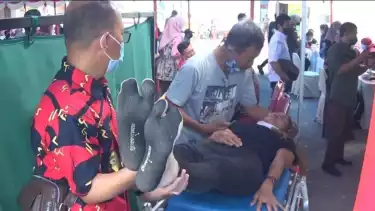 Kabupaten Gowa, Sulawesi Selatan - Seorang ibu rumah tangga (IRT) tiba-tiba jatuh pingsan usai menerima Vaksin dosis kedua di halaman Kantor Kejaksaan Negeri Kabupaten Gowa, Sulawesi Selatan. Kamis (30/9) sore tadi.