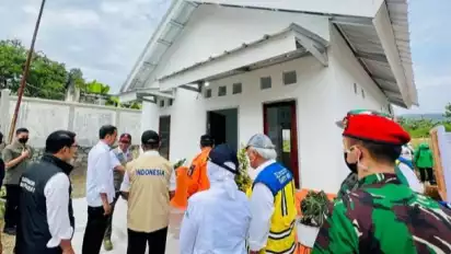 Jakarta - Presiden Joko Widodo meninjau rumah contoh yang tahan gempa di Yonif Raider 300, Kecamatan Karangtengah, Kabupaten Cianjur, Jawa Barat, Kamis (8/12/2022).