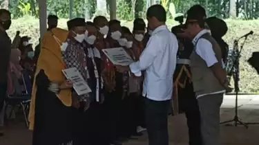 Cianjur, Jawa Barat - Presiden RI Joko Widodo (Jokowi) di Kabupaten Cianjur, Jawa Barat, Kamis (8/12/2022) menyerahkan uang bantuan tahap pertama untuk 8.100 orang korban gempa Cianjur yang akan digunakan untuk membangun kembali rumah mereka yang rusak.