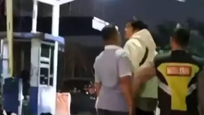 Nampak pula dalam video tersebut sejumlah sekuriti dan warga pengguna jalan coba melerai aksi keributan antar dua pengendara itu namun tak berbuah hasil.Â