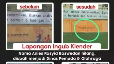 Jakarta - Media sosial dihebohkan dengan foto penghapusan nama mantan Gubernur DKI Jakarta Anies Baswedan di dinding Lapangan Ingub Klender, Jakarta Timur.