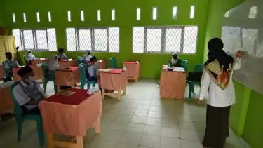 Palu,Sulteng - Sejumlah sekolah Madrasah di Kota Palu, Sulawesi Tengah, mulai menerapkan pembelajaran tatap muka secara terbatas pada Senin (04/10/2021). Ini untuk pertama kalinya belajar offline dilakukan mengingat sekolah sudah setahun ditutup sebab adanya wabah Covid-19.