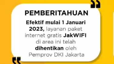 "Pemberitahuan efektif mulai 1 Januari 2023, layanan paket internet gratis JakWIFI di area ini telah dihentikan oleh Pemprov DKI Jakarta," keterangan foto tersebut.
