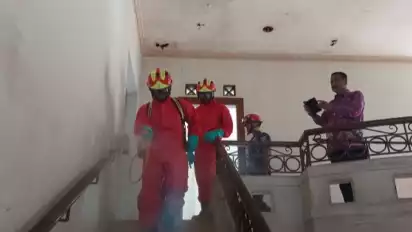Petugas Damkar Lakukan Sterilisasi di Rumah Ibu Eny dan Tiko
