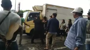 "Menurut keterangan supir truk dia di acungkan senjata api. Enggak tahu itu senjata apa. Saya tidak tahu bersinggungan di mananya," kata saksi di lokasi, Irfan.