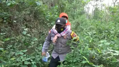 Demi Vaksin, Bhabinkamtibmas di Pacitan Gendong Warga yang Miliki Keterbatasan Fisik