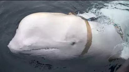Seekor paus yang memakai tali kekang yang muncul di Norwegia pada 2019, memicu spekulasi bahwa ia digunakan untuk surveilans, muncul kembali di lepas pantai Swedia bulan lalu.