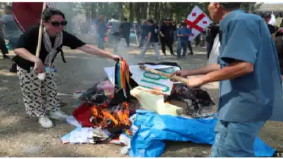 Massa Marah Bubarkan Festival LGBT di Georgia, Bendera Pelangi Dibakar