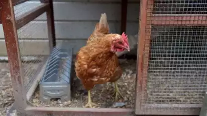 Dokumentasi. Seekor Ayam Peliharaan Berada dalam Kandang di Wangenies, Belgia, 2017