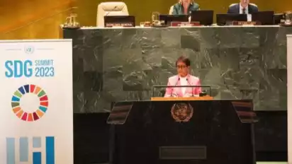 Retno bersama Menteri Luar Negeri Irlandia Micheál Martin dan Menteri Luar Negeri Kanada Melanie Joly menjadi pembicara di High-level Side Event: Global Solidarity with Afghan Women and Girls serta Women's Forum on Afghanistan, yang digelar di sela-sela Sidang Majelis Umum PBB di New York, AS, Selasa (19/9).