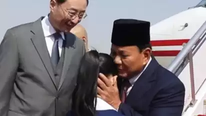 Uniknya, ketika baru tiba ke China, Prabowo langsung mendapat sambutan dari seorang anak kecil dan mendapatkan bingkisan bunga.