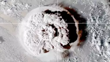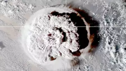 Citra-citra satelit menangkap erupsi vulkanik pada Sabtu ketika letusan gunung berapi menghembuskan gumpalan asap ke udara sekitar 12 mil (19,3 km) di atas permukaan laut. Langit di atas Tonga menjadi gelap oleh abu.