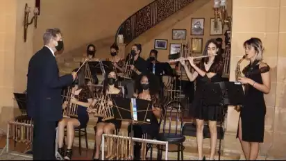 Jakarta - Orkestra angklung Camaguey Kuba turut memeriahkan acara pameran foto dan batik dalam rangka perayaan 62 tahun hubungan diplomatik Indonesia-Kuba, menurut KBRI Havana dalam keterangan tertulis yang diterima di Jakarta, Selasa (8/2/2022)