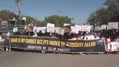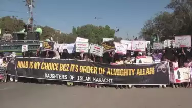 Ratusan Wanita Muslim Pakistan Gelar Aksi Protes Larangan Penggunaan Jilbab Sejumlah Sekolah di India