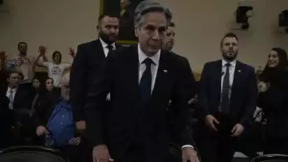 Namun, mereka ditangkap dan diusir dari ruang sidang. Meski terganggu oleh aksi tersebut, Blinken tetap melanjutkan kesaksiannya.