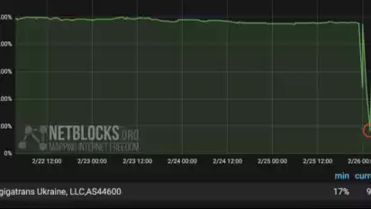 Monash IP Observatory di Australia mengatakan sejauh ini hanya distrik Obolonskyi di Kyiv dan bagian tengah Kharkiv, di timur Ukraina, yang menunjukkan tanda kegagalan internet.