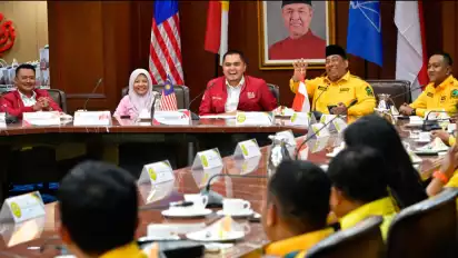 tvOnenews.com - Pimpinan Pusat Angkatan Muda Partai Golkar (PP AMPG) mengadakan pertemuan dengan Pergerakan Pemuda UMNO Malaysia di Kantor Ibu Pejabat UMNO PWTC Kuala Lumpur pada, Selasa 25/2/2025.