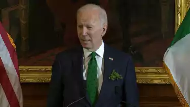 Selama acara tersebut, Biden mengutuk Putin dan invasi Rusia ke Ukraina, dengan mengatakan, "Poin umum saya adalah, Anda tahu, sekarang Anda memiliki Irlandia dan Inggris Raya ... berdiri bersama melawan diktator pembunuh, preman murni yang melancarkan serangan. perang tidak bermoral melawan rakyat Ukraina."