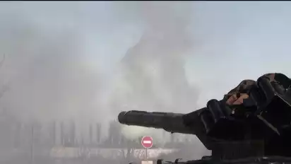 Kharkiv, Ukraina - Pasukan bersenjata Ukraina merilis sebuah video yang memperlihatkan medan tempur di dekat wilayah Kharkiv, Ukraina. Dalam video tersebut terlihat, tank-tank Ukraina terus menembak ke target mereka.