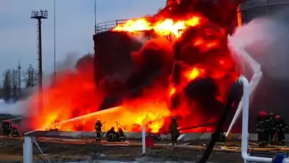 Lviv, Ukraina - Serangan Rudal jelajah presisi tinggi milik Rusia menghantam kilang minyak di kota Lviv sebelah barat Ukraina. Pejabat setempat menyatakan empat rudal jelajah menghantam kilang minyak tersebut pada Sabtu (26/3/2022) lalu. Selain itu, dilaporkan sejumlah orang terluka akibat serangan ini.