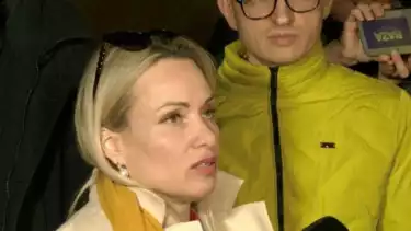"Marina telah ditahan," tulis sebuah unggahan di kanal Telegram-nya, disertai foto dua petugas polisi yang membawanya ke sebuah mobil van putih.