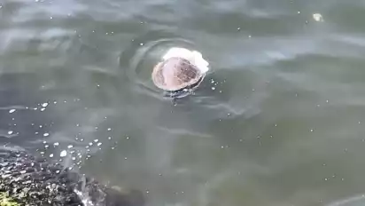 Seorang warga bernama Antonio Pereira Dos Santos menemukan bangkai penyu saat sedang berada di sekitar perairan tersebut. Saat itu Santos melihat hewan tersebut terdampar dan terperangkap dalam plastik. Santos mengira hewan itu bisa diselamatkan sehingga dia langsung melompat ke laut. Namun lelaki ini menemukan kura-kura itu sudah mati.